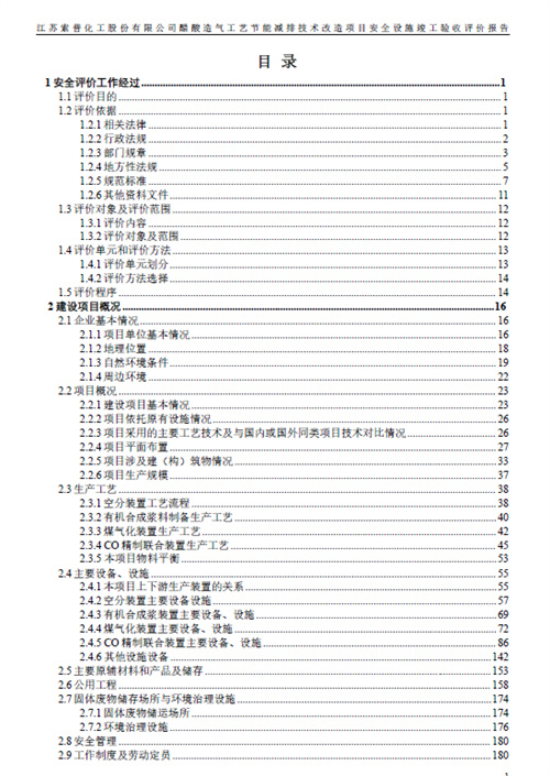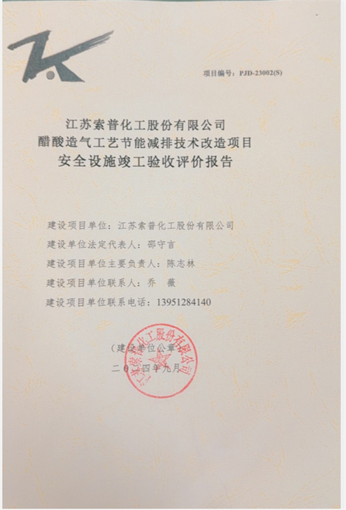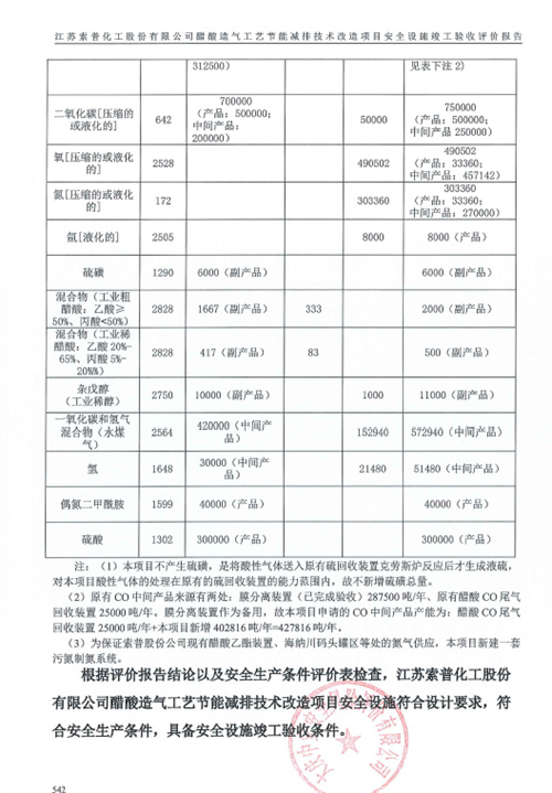 江蘇索普化工股份有限公司醋酸造氣工藝節(jié)能減排技術(shù)改造項(xiàng)目安全設(shè)施竣工驗(yàn)收評價(jià)報(bào)告 |
