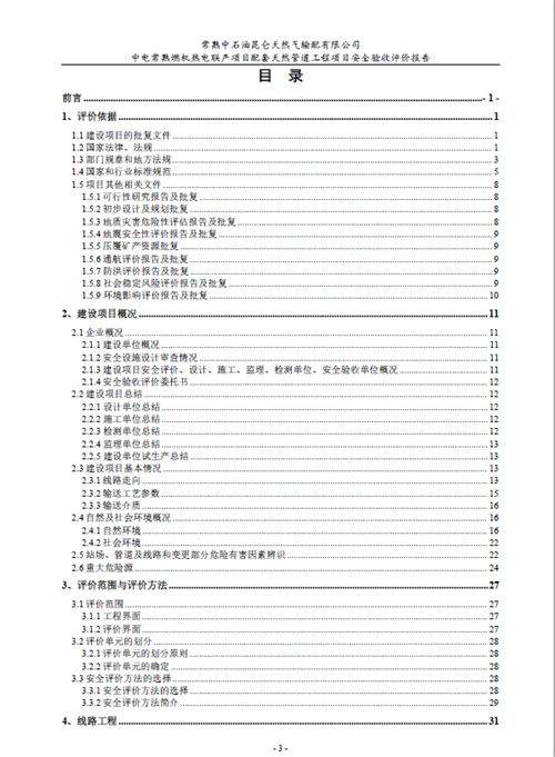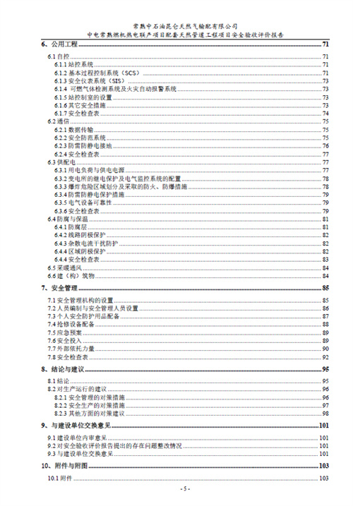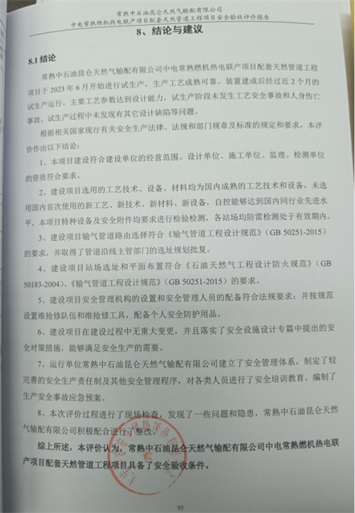 常熟中石油昆侖天然氣輸配有限公司中電常熟燃機熱電聯產項目配套天然管道工程項目安全設施竣工驗收評價報告 |