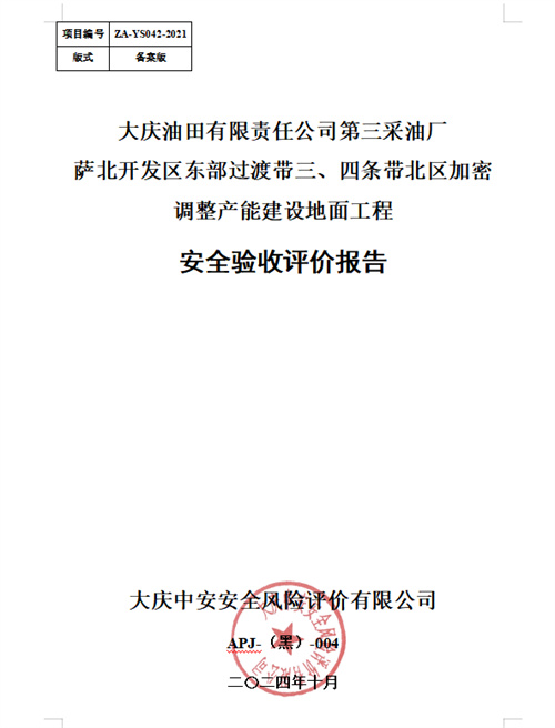 大慶油田有限責任公司第三采油廠薩北開發區東部過渡帶三、四條帶北區加密調整產能建設地面工程安全驗收評價報告 |