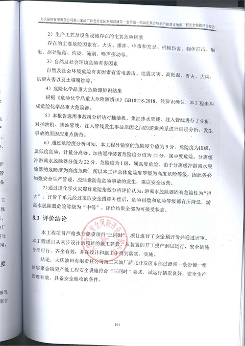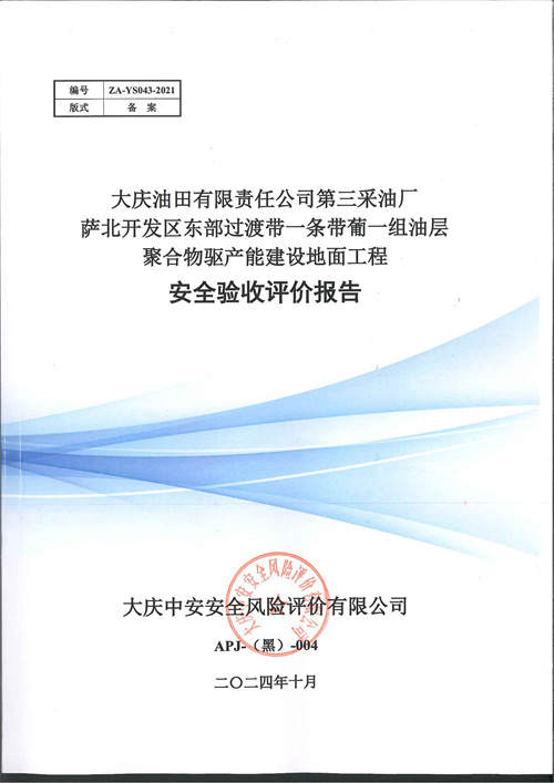 大慶油田有限責任公司第三采油廠薩北開發(fā)區(qū)東部過渡帶一條帶葡一組油層聚合物驅(qū)產(chǎn)能建設地面工程安全驗收評價報告 |