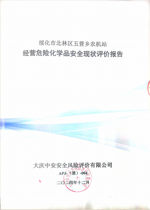 綏化市北林區五營鄉農機站經營危險化學品安全現狀評價報告