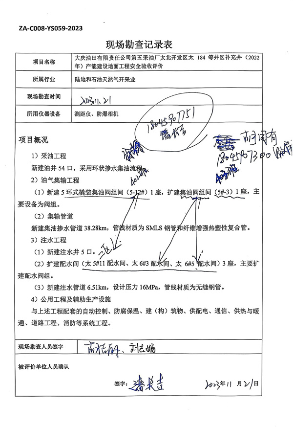 大慶油田有限責任公司第五采油廠太北開發區太184等井區補充井(2022年)產能建設地面工程安全驗收評價報告 |