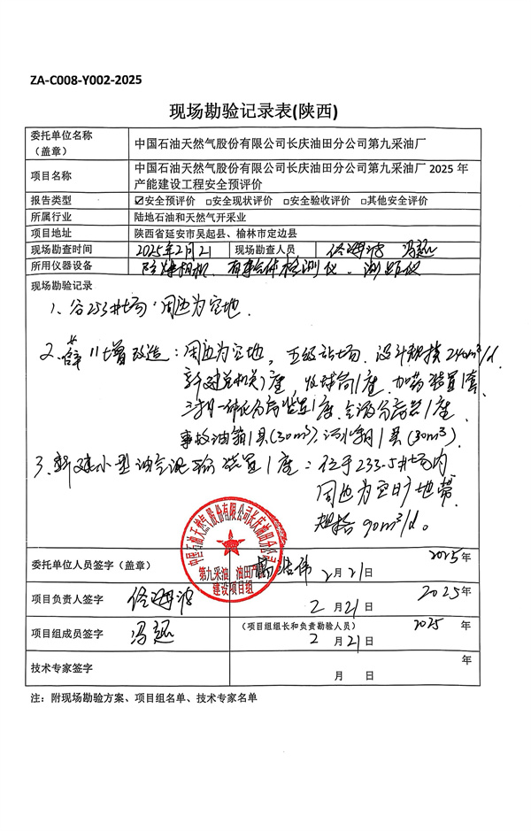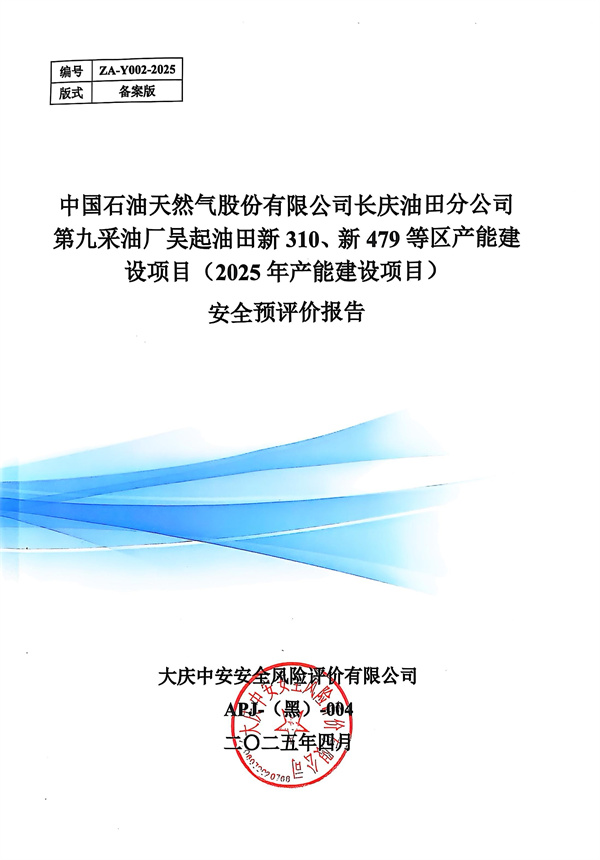 中國石油天然氣股份有限公司長慶油田分公司第九采油廠吳起油田新310、新479等區產能建設項目(2025年產能建設項目)安全預評價報告