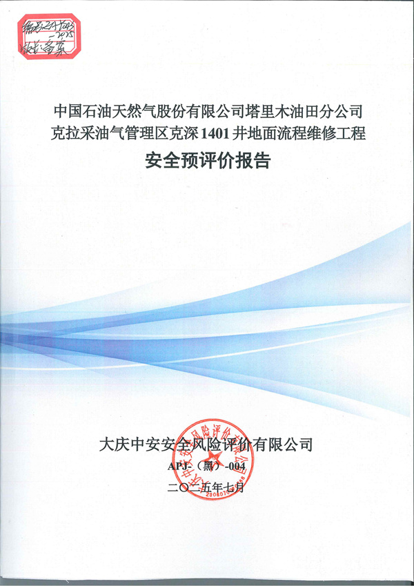 中國石油天然氣股份有限公司塔里木油田分公司克拉采油氣管理區克深1401井地面流程維修工程安全預評價報告 |
