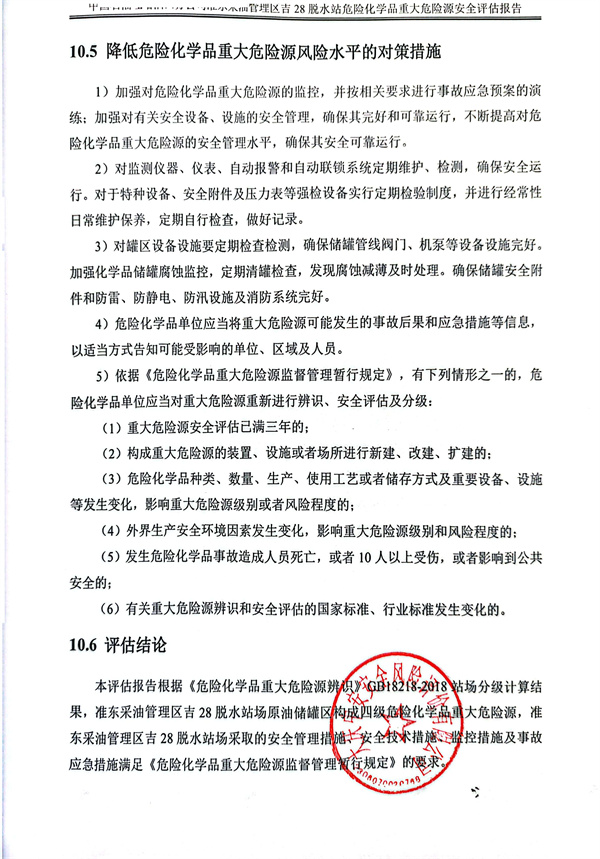 中國(guó)石油天然氣股份有限公司吐哈油田分公司準(zhǔn)東采油管理區(qū)吉28脫水站危險(xiǎn)化學(xué)品重大危險(xiǎn)源安全評(píng)估報(bào)告