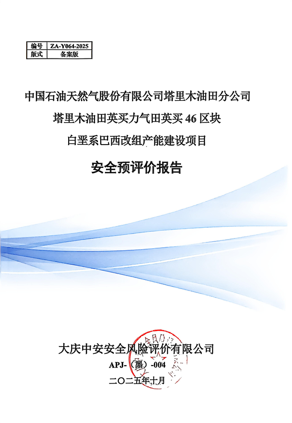 中國石油天然氣股份有限公司塔里木油田分公司塔里木油田英買力氣田英買46區(qū)塊白堊系巴西改組產(chǎn)能建設(shè)項目安全預(yù)評價報告