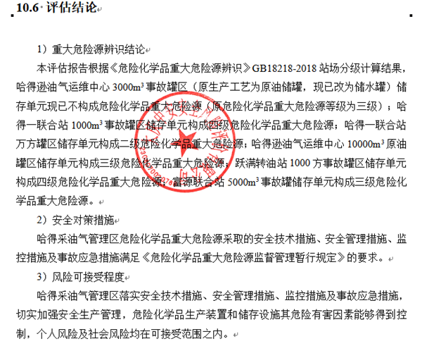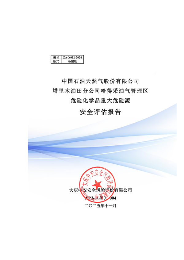 中國石油天然氣股份有限公司塔里木油田分公司哈得采油氣管理區危險化學品重大危險源安全評估報告