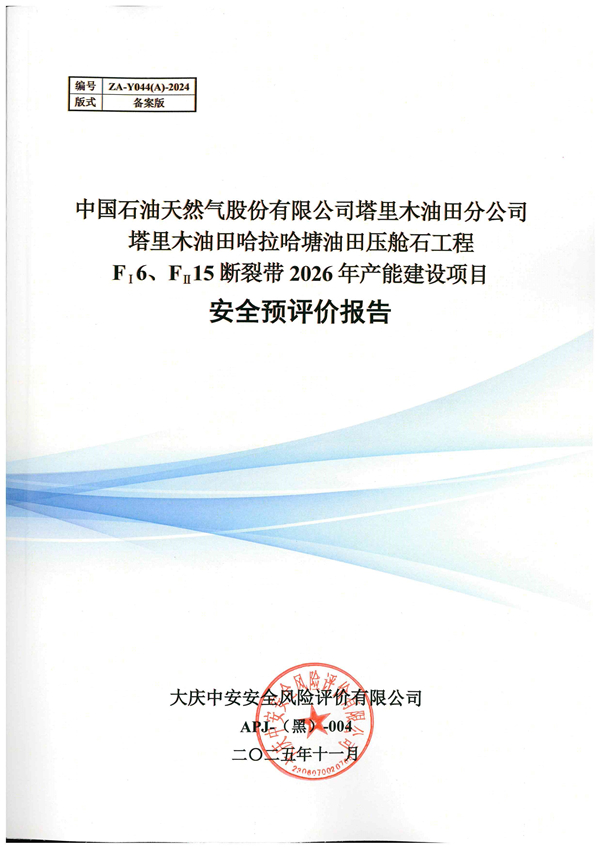 中國石油天然氣股份有限公司塔里木油田分公司塔里木油田哈拉哈塘油田壓艙石工程FⅠ6、FⅡ15斷裂帶2026年產能建設項目安全預評價報告 |