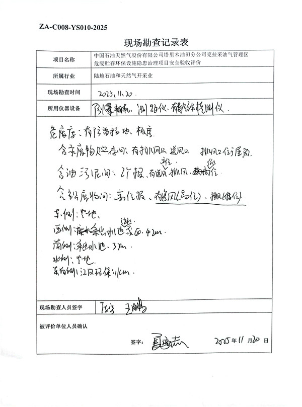 中國石油天然氣股份有限公司塔里木油田分公司克拉采油氣管理區(qū)危廢貯存環(huán)保設(shè)施隱患治理項目設(shè)計、施工、試運行管理和監(jiān)督制度齊全,安全設(shè)施與主體工程同時設(shè)計、同時施工、同時投入生產(chǎn)和使用,經(jīng)過符合性檢查,符合法律、法規(guī)和標準規(guī)范的要求,具備安全驗收的條件。 |