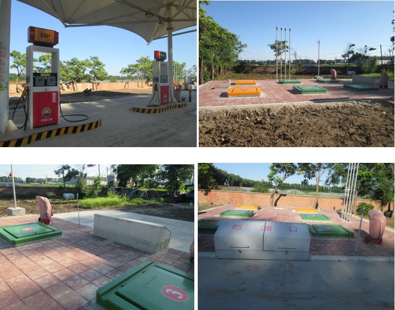 新建SF非承重罐區一座,設30m3SF儲罐3臺(1汽2柴);設置卸油油氣回收及分散式加油油氣回收系統;采用成品防滲操作井;新建1座4孔成品標準卸油口箱。維修一層站房,利舊旱廁;利舊1臺雙槍自吸泵柴油加油機,利舊1臺雙槍自吸泵汽油加油機;修復2座單柱加油島,防撞柱利舊。新建雙層油罐及管線滲漏監測系統、緊急切斷系統、罐區人體靜電釋放裝置、聲光報警系統;新建H=2.2m的實體圍墻約50m;新建硬化地面約600m2。 |