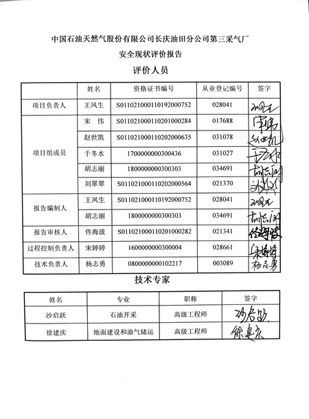 中國石油天然氣股份有限公司長慶油田分公司第三采氣廠安全現狀評價 |