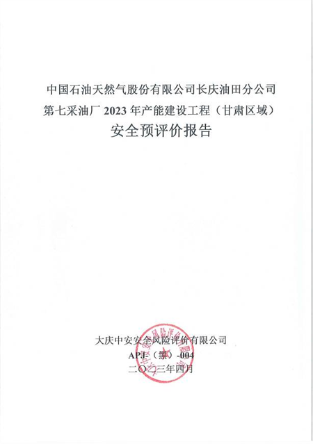 中國石油天然氣股份有限公司長慶油田分公司第七采油廠2023年產能建設工程(甘肅區域)安全預評價 |