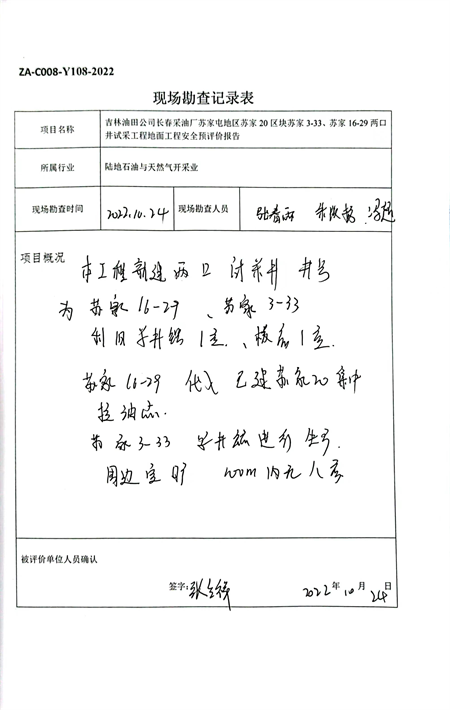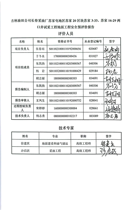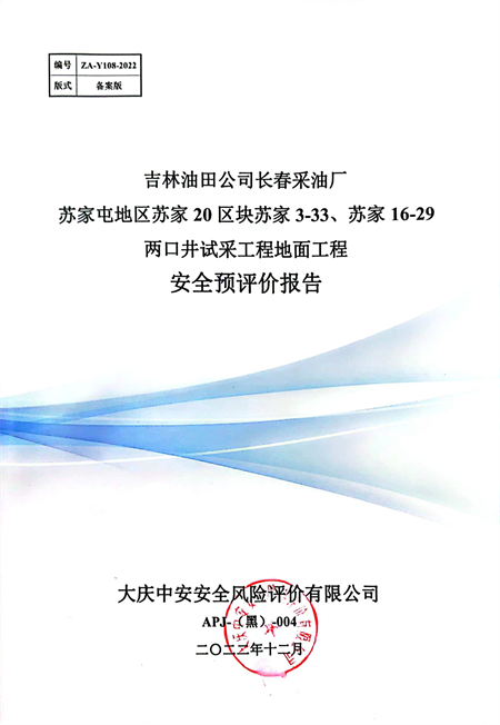 吉林油田公司長春采油廠蘇家屯地區(qū)蘇家20區(qū)塊蘇家3-33、蘇家16-29兩口井試采工程地面工程安全預(yù)評價 |