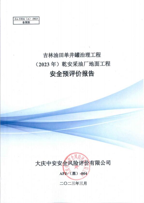 吉林油田單井罐治理工程(2023年)乾安采油廠地面工程安全評價報告