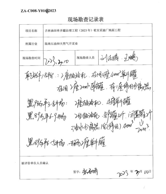 吉林油田單井罐治理工程(2023年)乾安采油廠地面工程 |