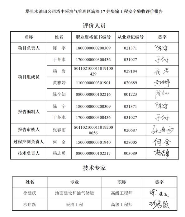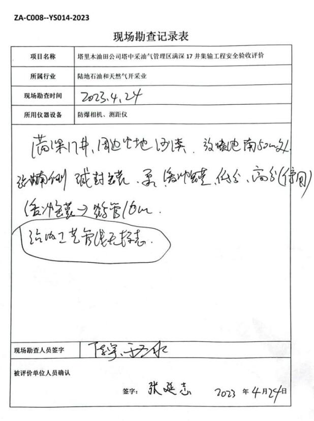 塔里木油田公司塔中采油氣管理區(qū)滿深17井集輸工程安全驗收評價 |