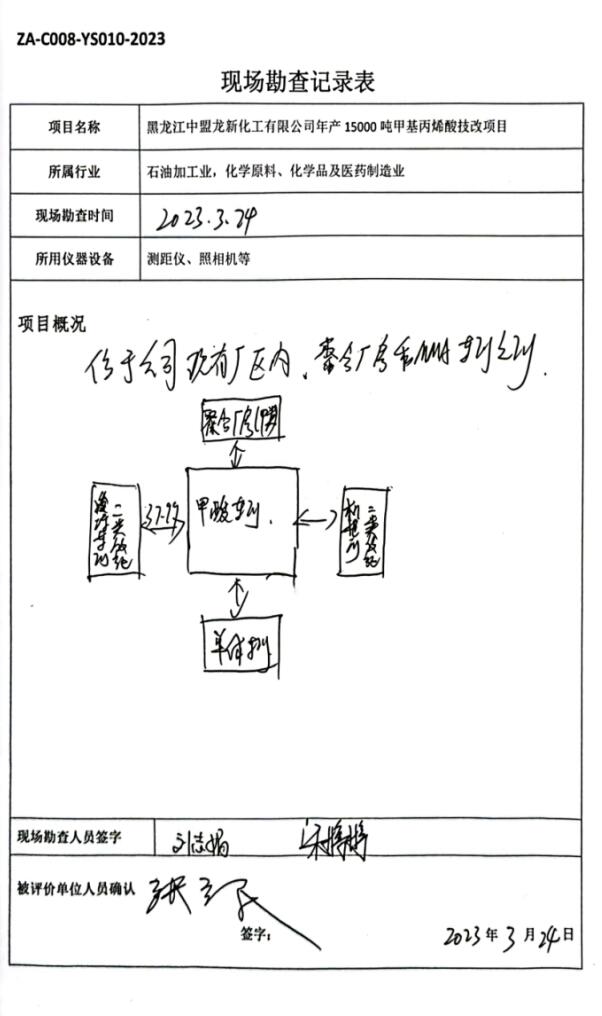 黑龍江中盟龍新化工有限公司年產15000噸甲基丙烯酸技改項目安全現狀評價 |