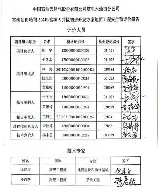 中國石油天然氣股份有限公司塔里木油田分公司富滿油田哈得302H-富源5井區初步開發方案地面工程安全評價報告