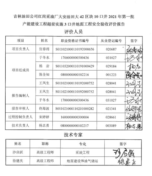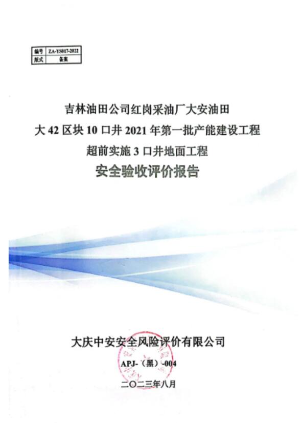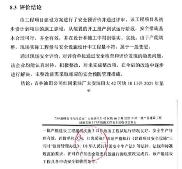 吉林油田公司紅崗采油廠大安油田大42區(qū)塊10口井2021年第一批產(chǎn)能建設工程超前實施3口井地面工程試運行情況良好,安全生產(chǎn)管理有效,評價單位認為,紅崗采油廠必須嚴格執(zhí)行《建設項目安全設施“三同時”監(jiān)督管理辦法》、《中華人民共和國安全生產(chǎn)法》等法律、法規(guī)和標準規(guī)范的要求,在對存在的安全隱患問題進行徹底整改完成后,該產(chǎn)能建設工程具備申請安全驗收的條件。 |