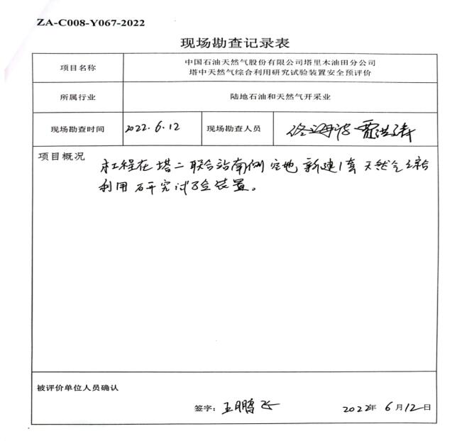中國石油天然氣股份有限公司塔里木油田分公司塔中天然氣綜合利用研究試驗裝置安全預評價報告 |