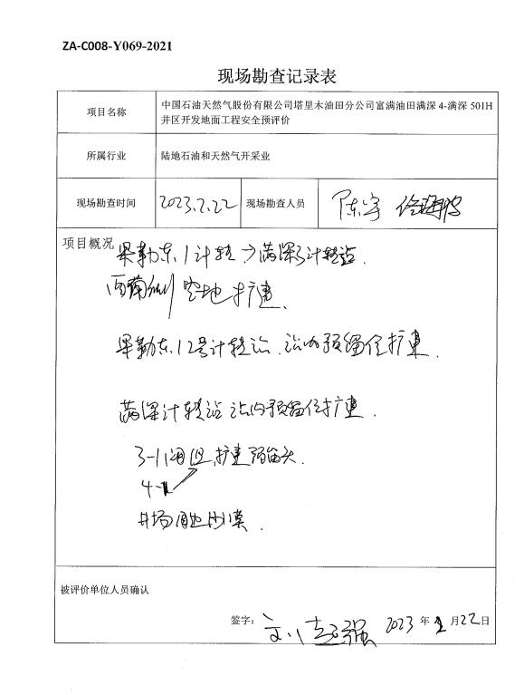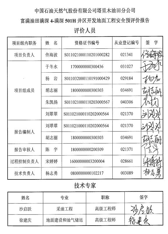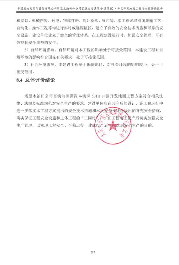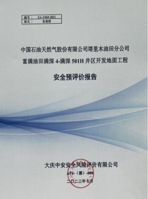 中國石油天然氣股份有限公司塔里木油田分公司富滿油田滿深4-滿深501H井區開發地面工程安全預評價報告