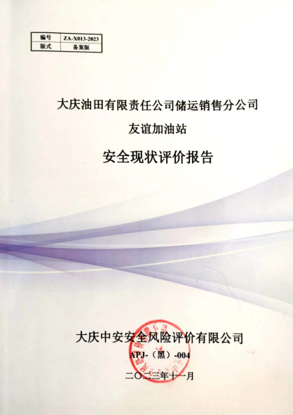 大慶油田有限責任公司儲運銷售分公司友誼加油站安全現狀評價報告 |