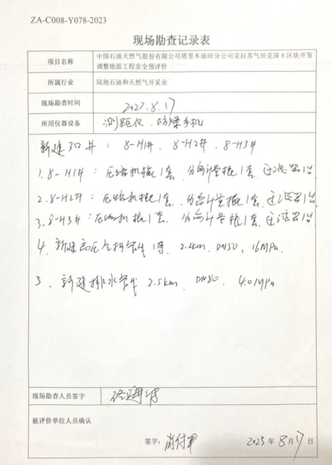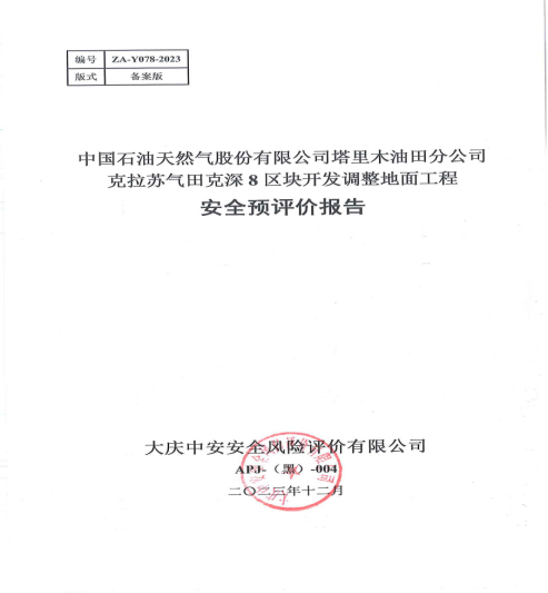 中國石油天然氣股份有限公司塔里木油田分公司克拉蘇氣田克深8區塊開發調整地面工程安全預評價報告
