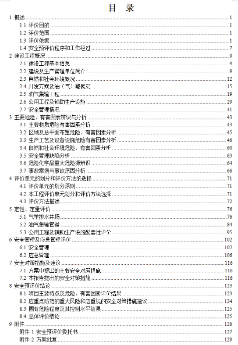 該工程存在主要危險有害因素為:井噴、火災、爆炸、中毒和窒息、物體打擊、高處墜落、機械傷害、車輛傷害、觸電、其他傷害等。 |