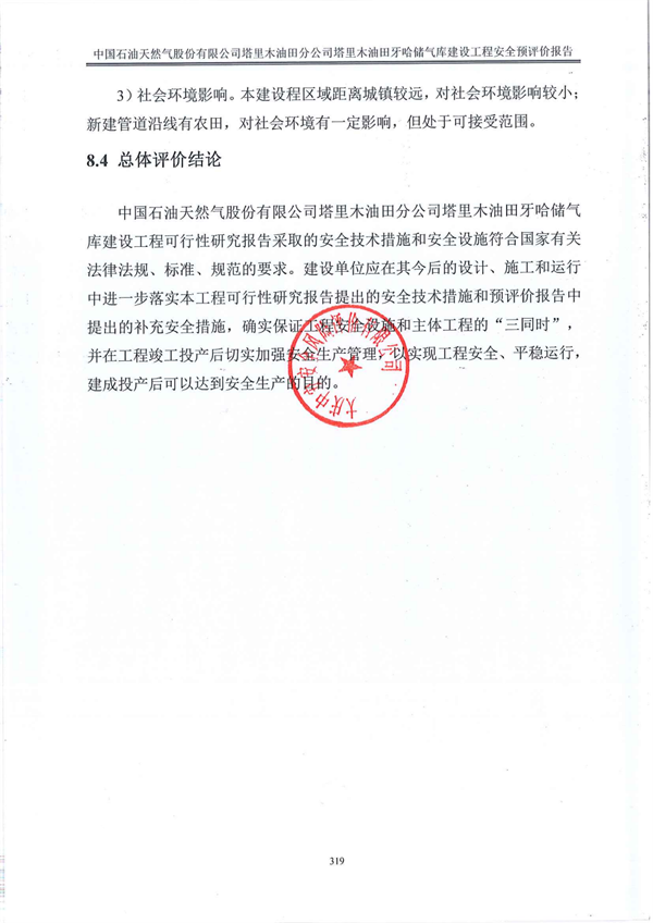 中國石油天然氣股份有限公司塔里木油田分公司塔里木油田牙哈儲氣庫建設(shè)工程安全預(yù)評價報告 |
