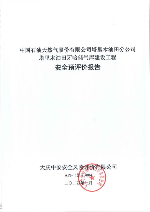 中國石油天然氣股份有限公司塔里木油田分公司塔里木油田牙哈儲氣庫建設(shè)工程 安全預(yù)評價報告
