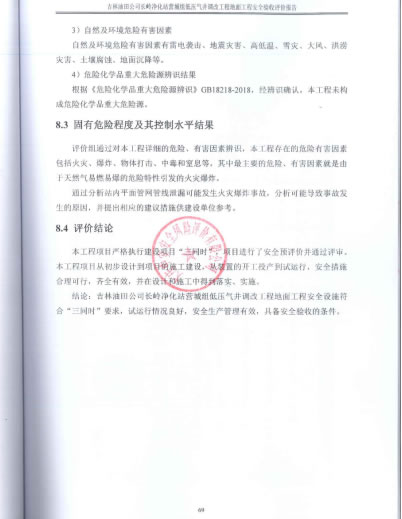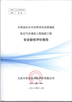 吉林油田公司長(zhǎng)嶺凈化站營(yíng)城組低壓氣井調(diào)改工程地面工程安全驗(yàn)收評(píng)價(jià)報(bào)告 |