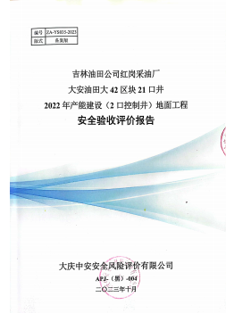 吉林油田公司紅崗采油廠大安油田大42區塊21口井2022年產能建設(2口控制井)地面工程 安全驗收評價報告