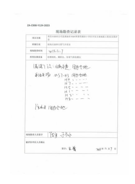 對擴建站場新建設備與已建設備的防火間距進行檢查,對新建井場的周邊環境進行檢查評價。 |