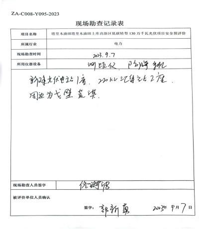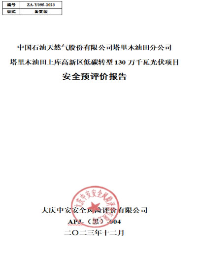 中國石油天然氣股份有限公司塔里木油田分公司 塔里木油田上庫高新區(qū)低碳轉型130萬千瓦光伏項目安全預評價報告