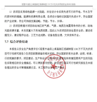中國石油天然氣股份有限公司塔里木油田分公司塔里木油田上庫高新區(qū)低碳轉型130萬千瓦光伏項目安全預評價報告 |