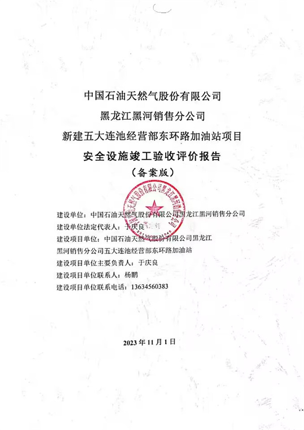 中國石油天然氣股份有限公司黑龍江黑河銷售分公司新建五大連池經營部東環路 加油站項目安全驗收評價