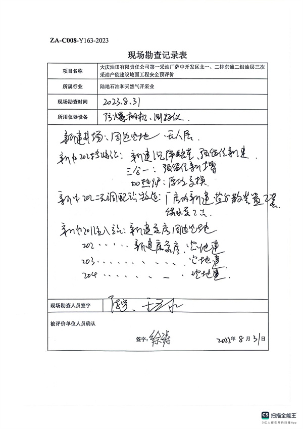大慶油田有限責任公司第一采油廠薩中開發區北一、二排東葡二組油層三次采油產能建設地面工程安全預評價