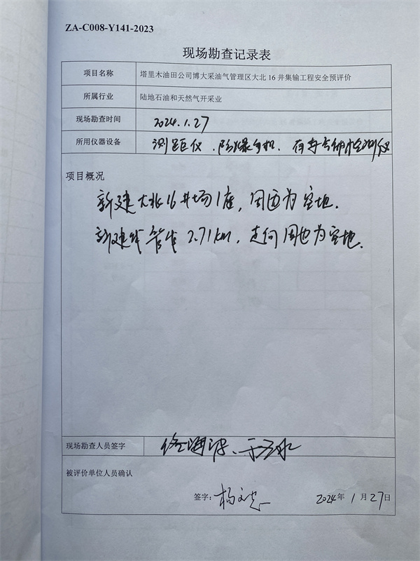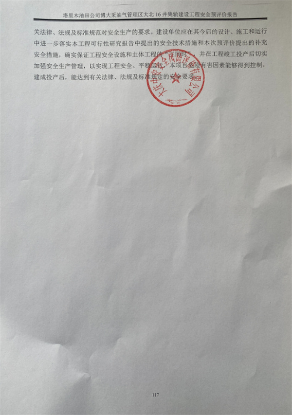 塔里木油田公司博大采油氣管理區(qū)大北16井集輸建設工程安全預評價報告