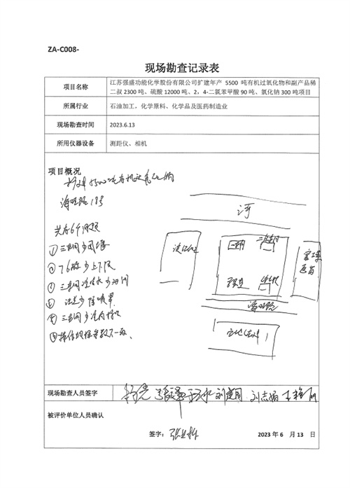 江蘇強盛功能化學股份有限公司擴建年產5500噸有機過氧化物和副產品稀二叔2300噸、硫酸12000噸、2,4-二氯苯甲酸90噸、氯化鈉300噸項目安全設施符合設計要求,符合安全生產條件,具備安全設施竣工驗收條件 |
