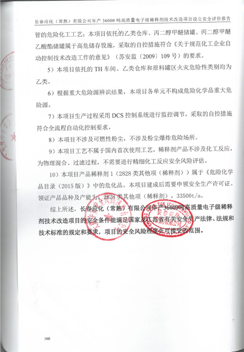 長(zhǎng)春應(yīng)化(常熟)有限公司年產(chǎn)36000噸高質(zhì)量電子級(jí)稀釋劑技術(shù)改造項(xiàng)目設(shè)立安全評(píng)價(jià)報(bào)告