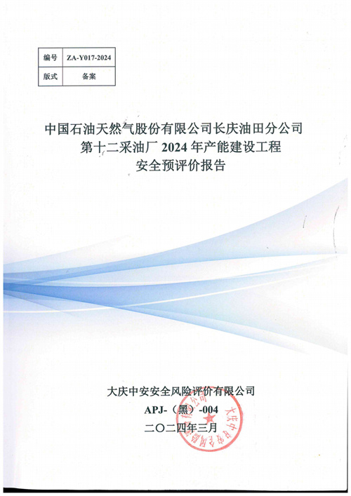 中國石油天然氣股份有限公司長慶油田分公司第十二采油廠2024年產能建設工程安全預評價報告 |