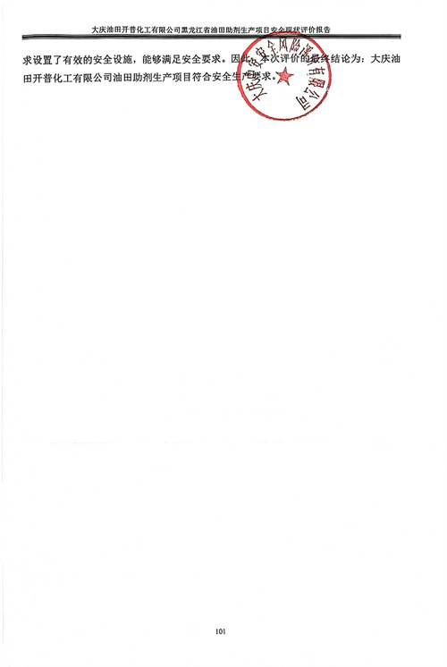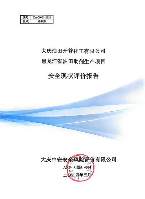 大慶油田開普化工有限公司黑龍江省油田助劑生產(chǎn)項目安全現(xiàn)狀評價
