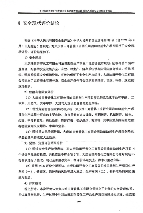 大慶油田開普化工有限公司黑龍江省油田助劑生產(chǎn)項目安全現(xiàn)狀評價報告 |