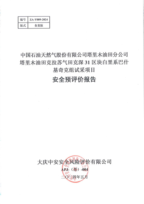 中國石油天然氣股份有限公司塔里木油田克拉蘇氣田克深31區塊白堊系巴什基奇克組試采項目安全預評價 |