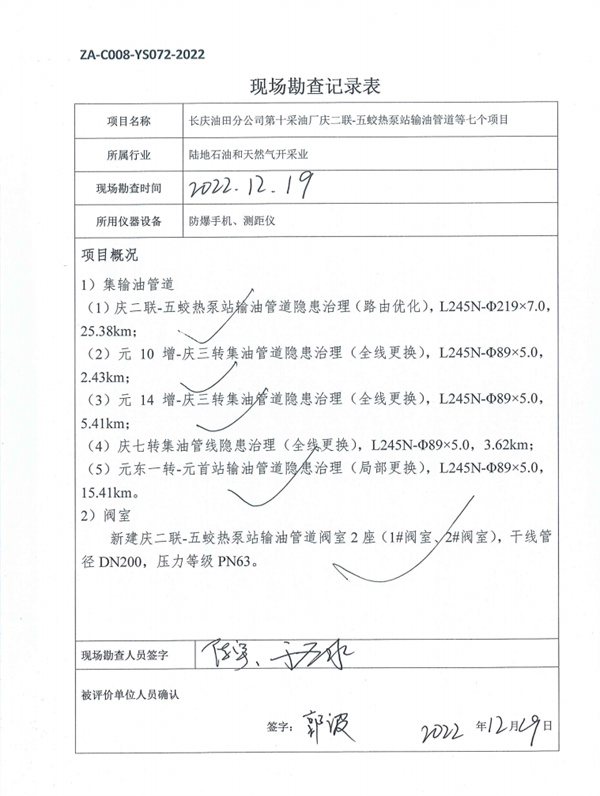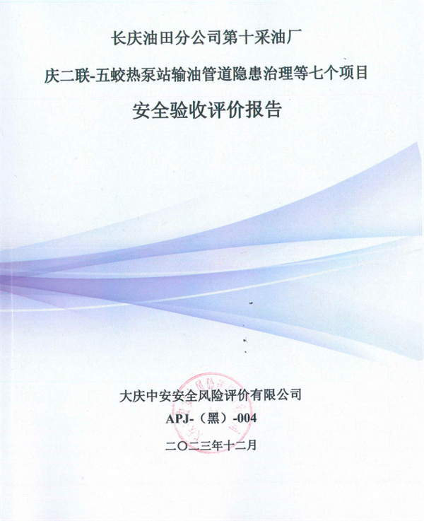 長慶油田分公司第十采油廠慶二聯-五蛟熱泵站輸油管道隱患治理等七個項目安全驗收評價報告 |