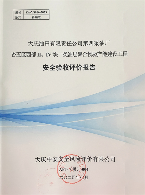 大慶油田有限責任公司第四采油廠杏五區西部II、IV塊一類油層聚合物驅產能建設工程安全驗收評價報告 |
