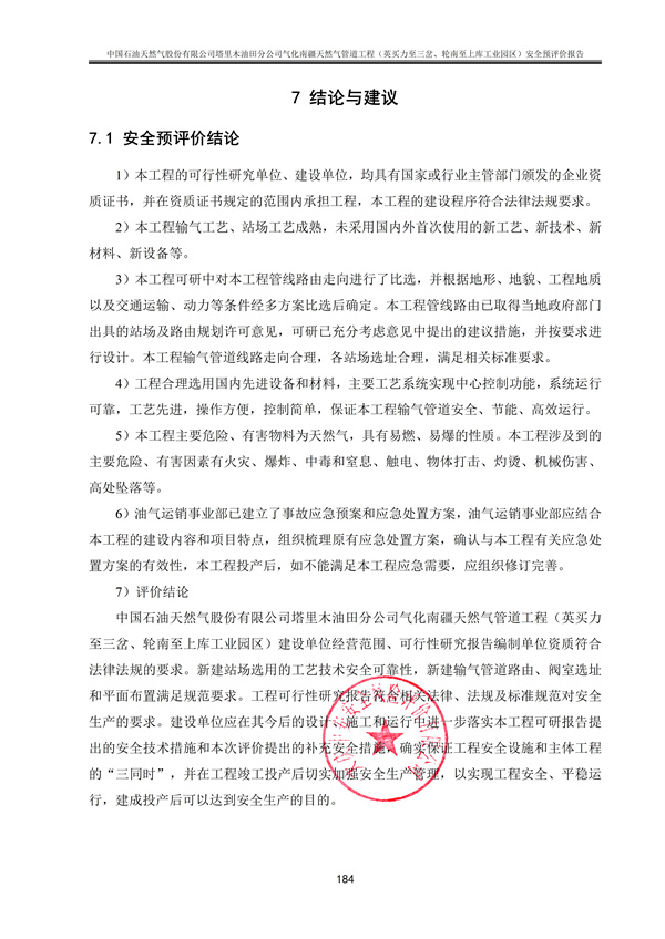 中國石油天然氣股份有限公司塔里木油田分公司氣化南疆天然氣管道工程(英買力至三岔、輪南至上庫工業園區)安全預評價報告 |